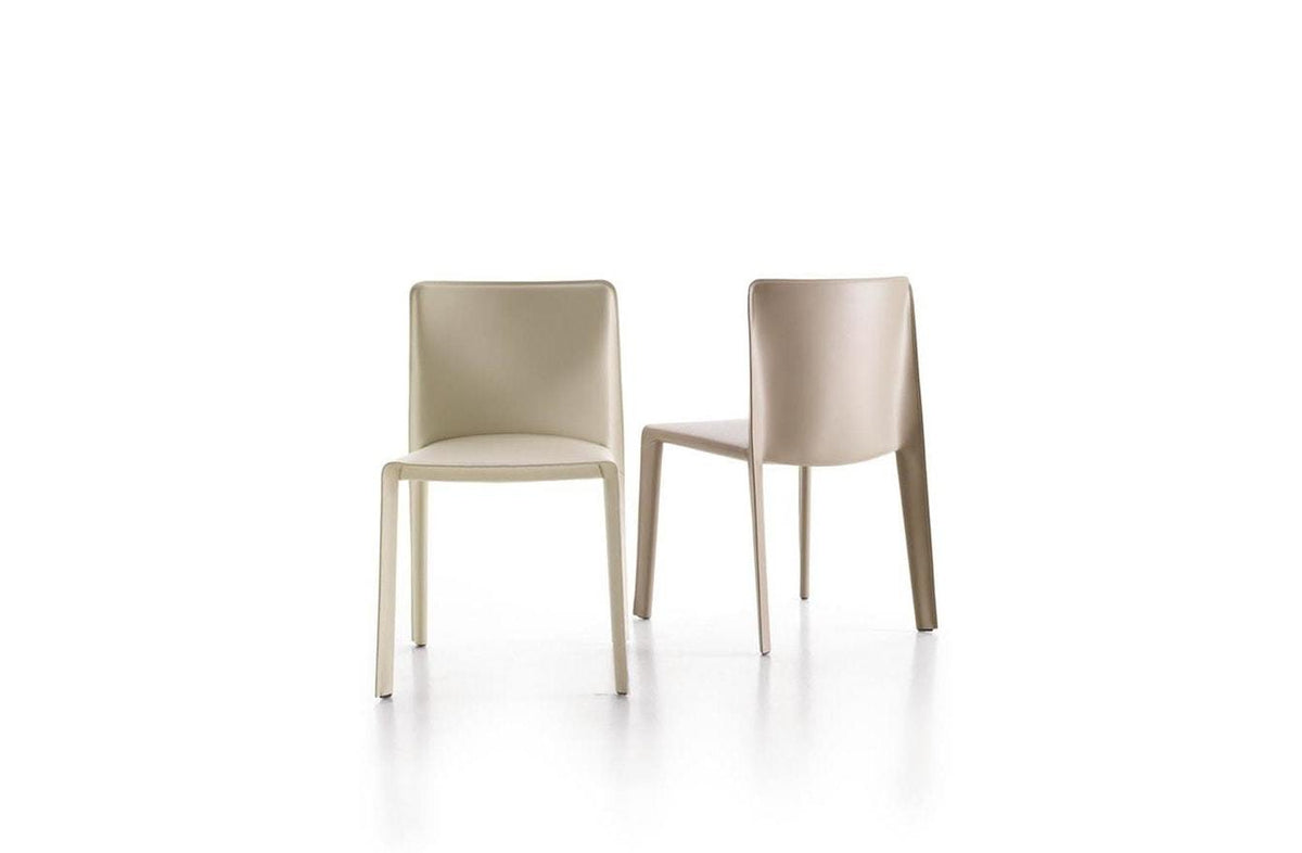 The chair theme continues with the exploration of the formal and technical development of thick leather. A simple, comfortable chair with refined details created in just one material, Doyl introduces a typology of upholstered thick leather chair where the classic proportions are inverted, transforming lines that are normally concave into convex sections, and thus enhancing the perception of softness. The designers placed great importance on graphic markings, created through continuous stitching on both the fronts and backs of the chair which correspond to the cutting lines and junctions of the thick leather. The thick leather is folded, curved and turned inside out, but never cut. The upholstery adds surprising comfort for a thick leather chair, while alternative technical materials offer brightly coloured variations.