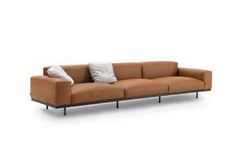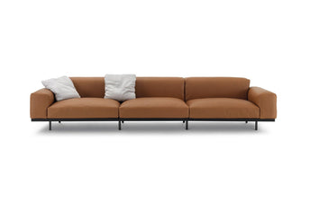Inside the display gallery by Aqualand, the living area features the Naviglio sofa designed by Yabu Pushelberg for B&B Italia. Photo c/o 'AURA by Aqualand'.