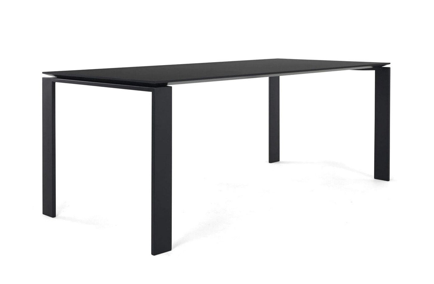 This functional and refined table also has a strict geometric design. Thanks to the elegant design solution, the position of the slim table top allows for the convenient positioning of drawers or storage furnishings for computer hardware. They can be placed side-by-side to form office workstations.