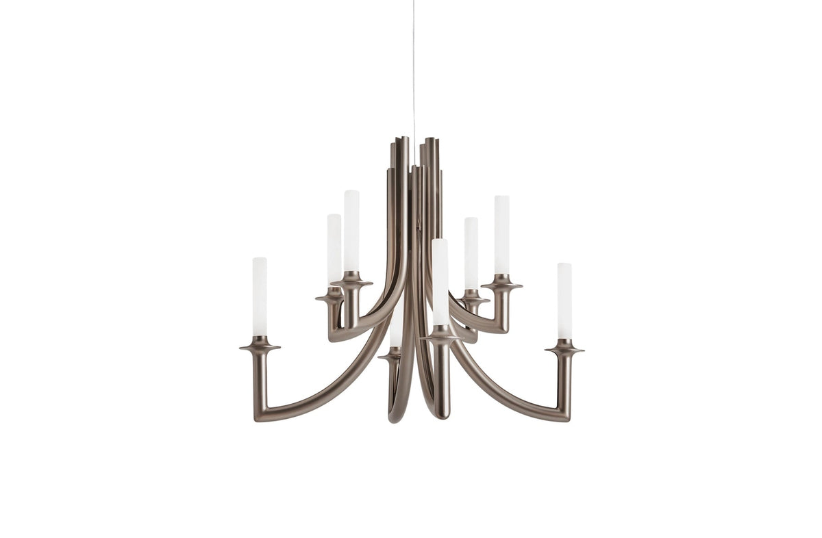 Many different styles, from 18th century eclecticism to contemporary minimalism, come together in Philippe Starck’s KHAN chandelier to create a new icon of elegance and modernity. The symbolism of the design is complemented by the technological innovation of Kartell’s new polycarbonate 2.0 in the colours black, champagne and clear.