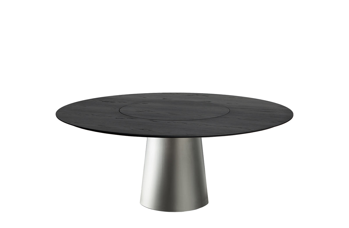 The Materic table, designed by Piero Lissoni, is a sculptural object where the absolute simplicity of design is juxtaposed to the sophistication of materials and workmanships. Materic features a round and tapered table top, laying on a truncated cone as a base and it’s available in 2 version: top in marble with wooden base and wooden top with metal base.
