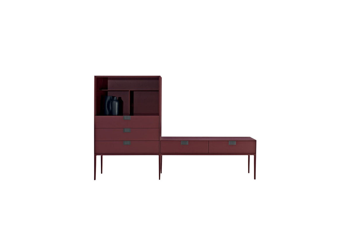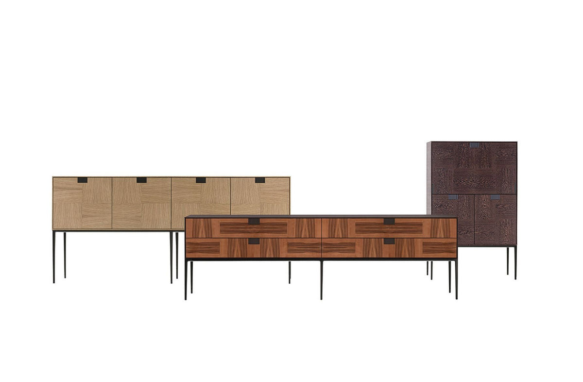 Alcor is a family of cabinets, sideboards and consoles marked by rigorous aesthetic paired with precious wood surfaces, expression of the excellence of Maxalto’s artisan processes. Offered in different configurations, dimensions and heights, with hinged and flap doors, drawers and open compartments, these pieces have an inlaid damier checkerboard pattern in various woods to choose from: tineo, natural wenge and oak in the various finishes included in the collection (light brushed, black brushed, grey and smoked oak).