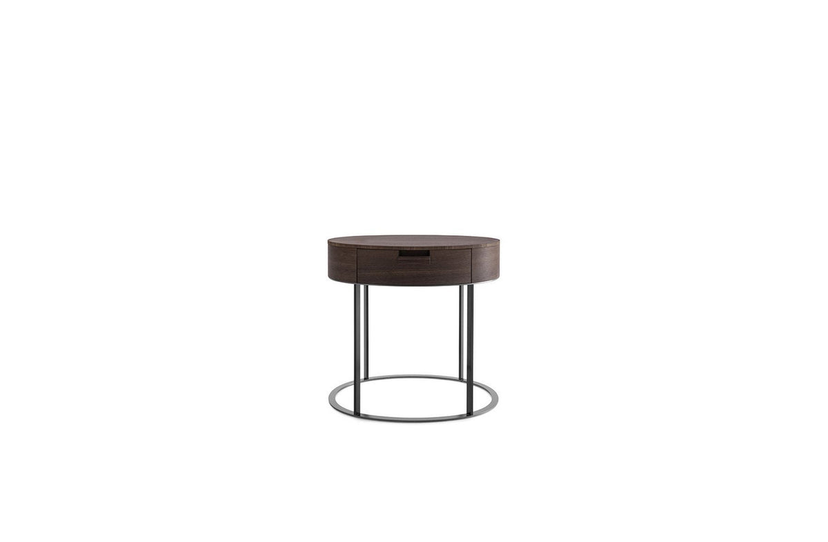 Perfect to be placed next to the bed, Amphora is presented in two versions: one has compact oval shape and holds two drawers of different sizes, the second one has a refined metal structure and hold one single drawer.