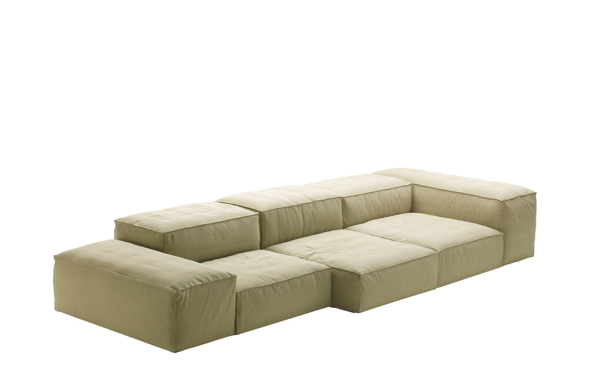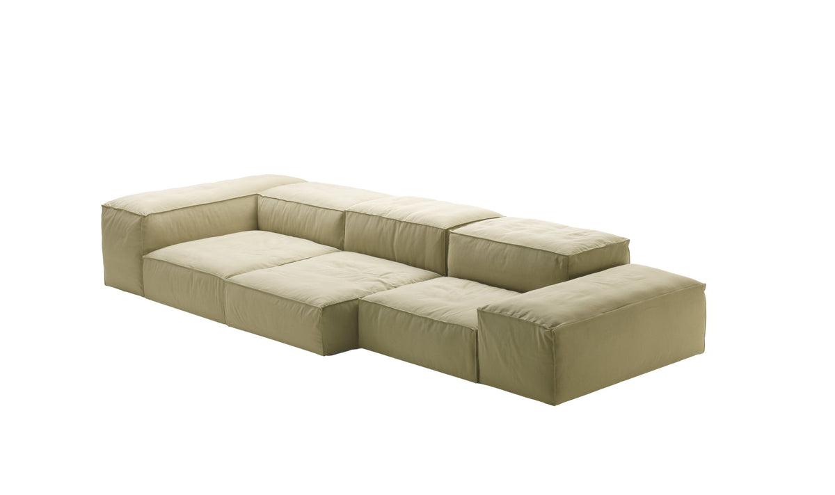 The ultimate modular sofa that is both casual and soft with yielding and malleable comfort, while creating a strong geometric anchor within a room. Designed by the architect Piero Lissoni in 2008, its form was influenced by traditional Middle Eastern seating of the Majlis, a culturally important low-rise cushioned space designed for social gatherings. A contemporary version of this centuries-old tradition, Extrasoft delivers compositions of soft geometric blocks to create a low and undulating upholstered landscape with abstract expression. Stripped of all non-essential elements and possessing beautifully subtle details, its cosy seats can be placed next to one another in various configurations. Now designed for the outdoors too, Extrasoft is a modern classic that allows flexibility and personalisation, advancing the great history of Italian sofa design.
