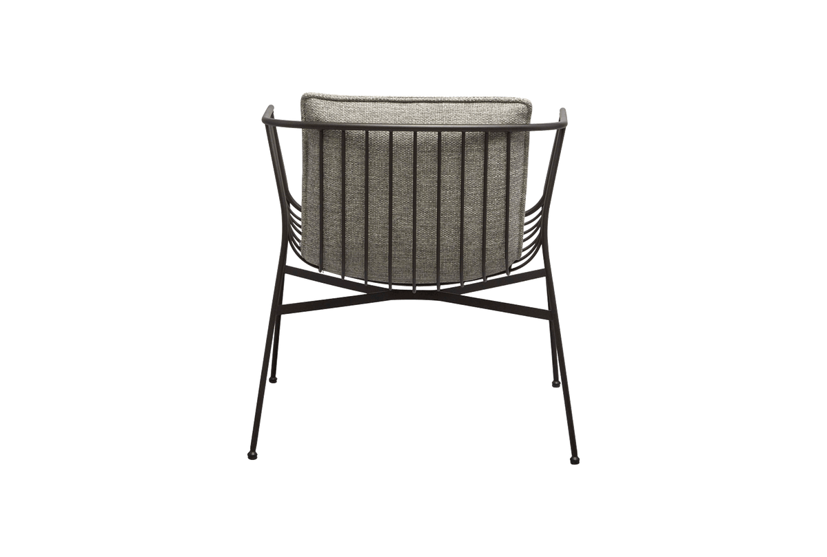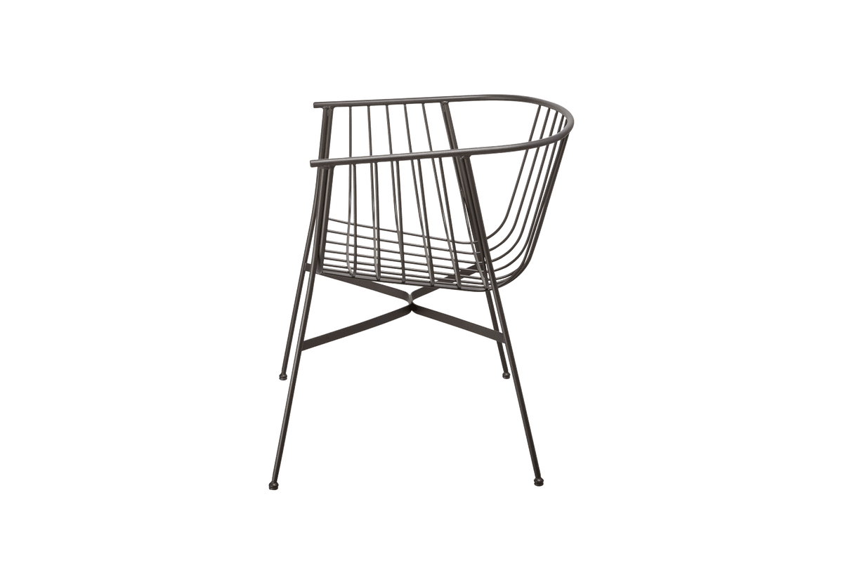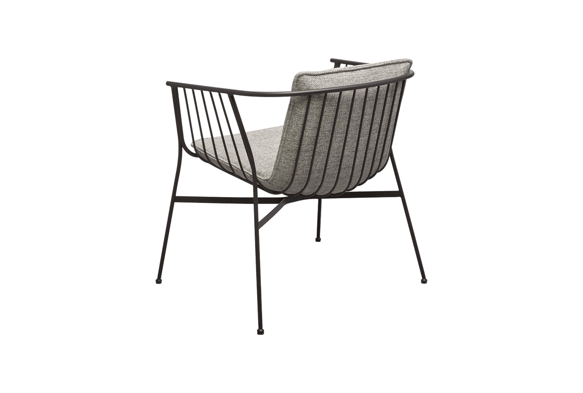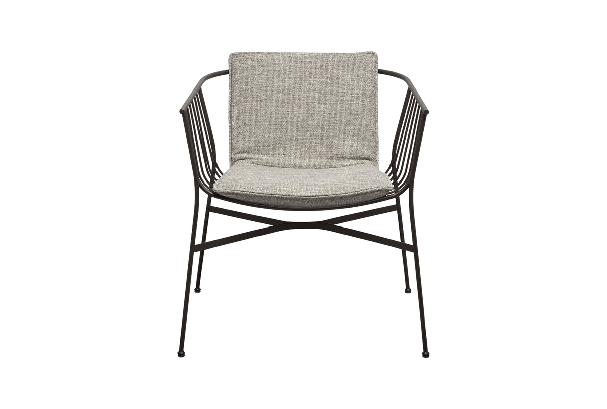 The wire grid of the seat is seemingly suspended from the soft arc of the arm and backrest, which creates both comfort and timeless elegance.
