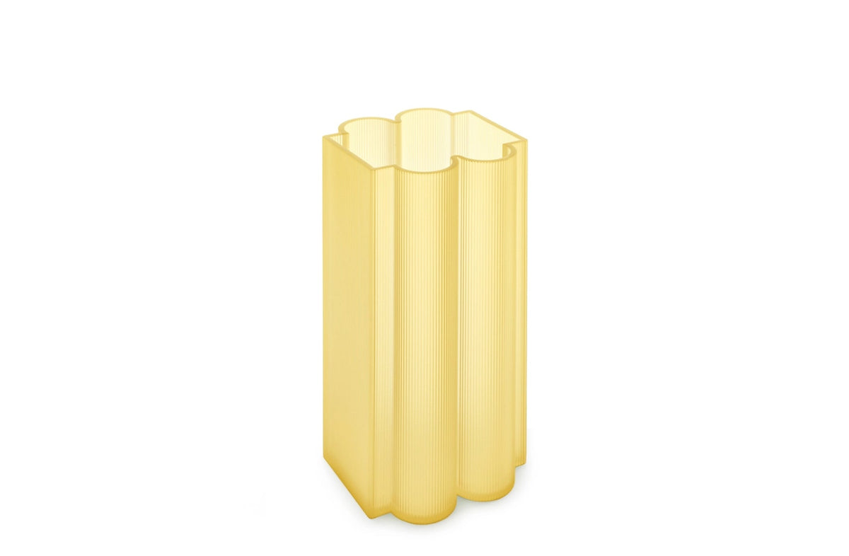 The new OKRA vases made of recycled plastic material, a collection that represents a continuous search for new tactile and aesthetic effects, fit into this habitat idea. What is special about this series is the material form of the collection.