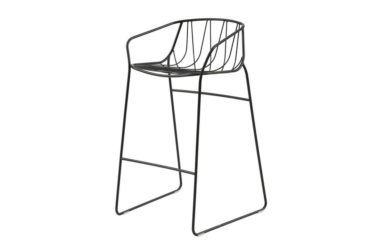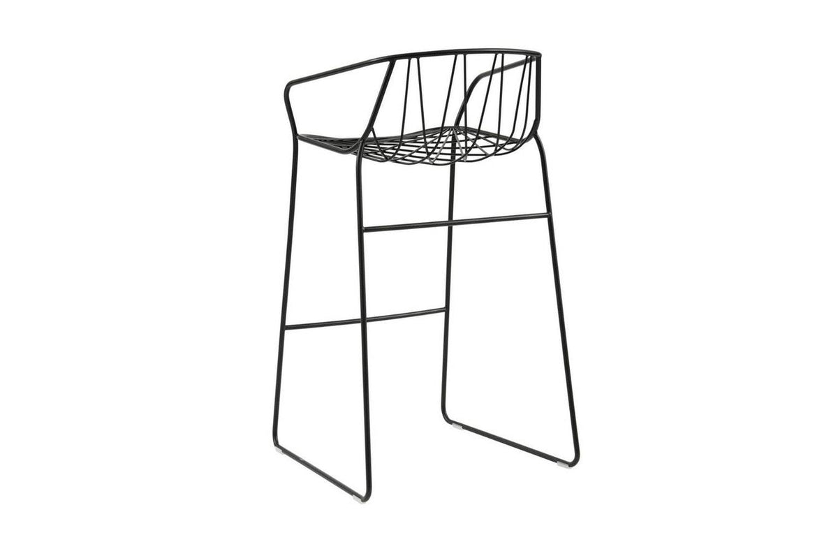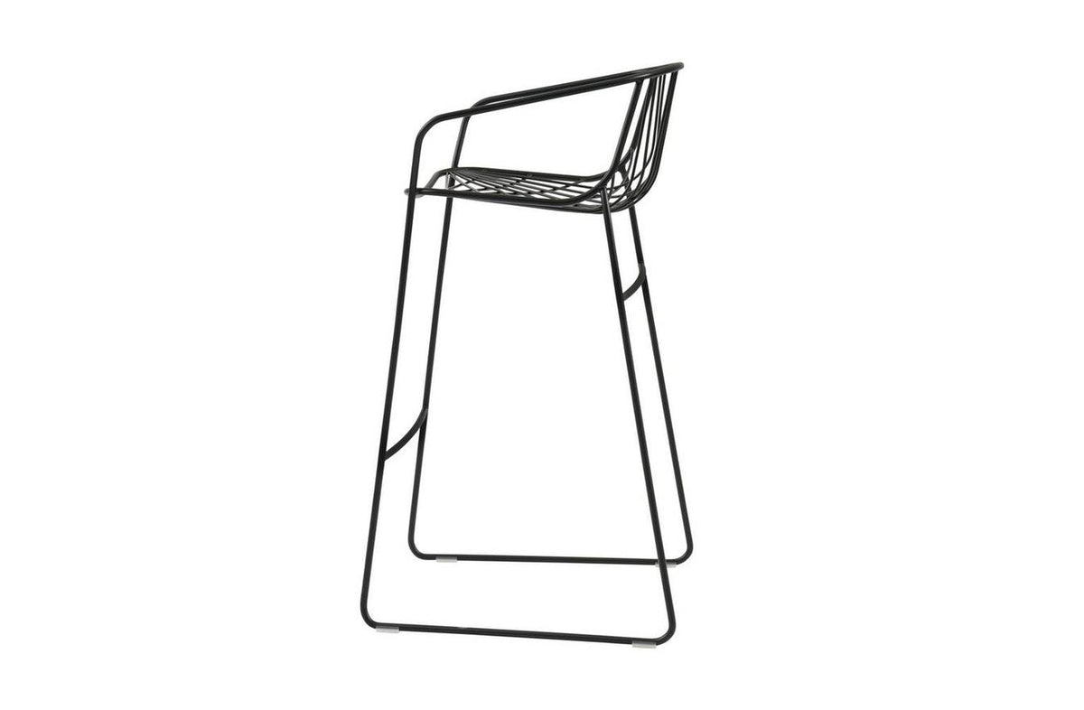 Supporting the sitter with arms, the graphic base and wire back give this stool a classic, minimal mood which helps it pair well in both traditional and contemporary settings, for home or roof top bar.