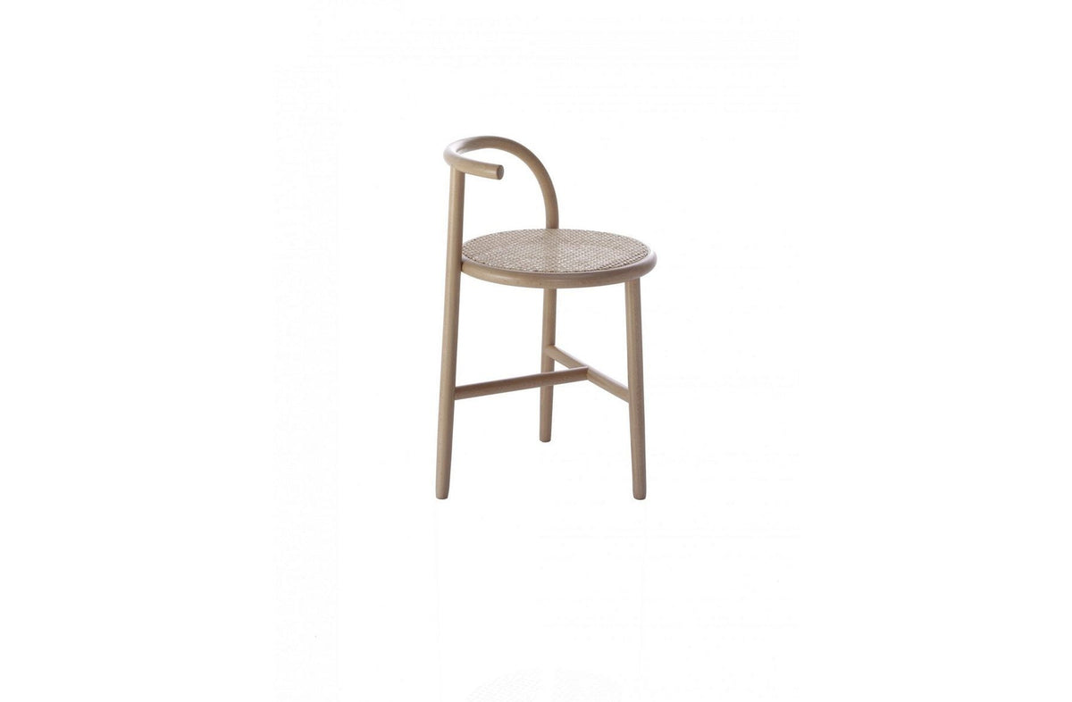 The refined elegance of the Japanese minimalism by Nendo abstracts from the brands' stylistic features, in order to reinterpret them in a contemporary light. A rigorous and poetic approach which distils the essence of the design research, where the steam-bent wood expresses only one structural detail, which draws the attention on each element of the SINGLE CURVE COLLECTION: low table, dining table and stool in three or four legs version. The three-leg stool proposed by Nendo in the SINGLE CURVE COLLECTION reinterpret with a discrete irony the constituent elements of Wiener GTV Design: the woven cane seat matches with the steam-bent beech element proposed by the backrest.