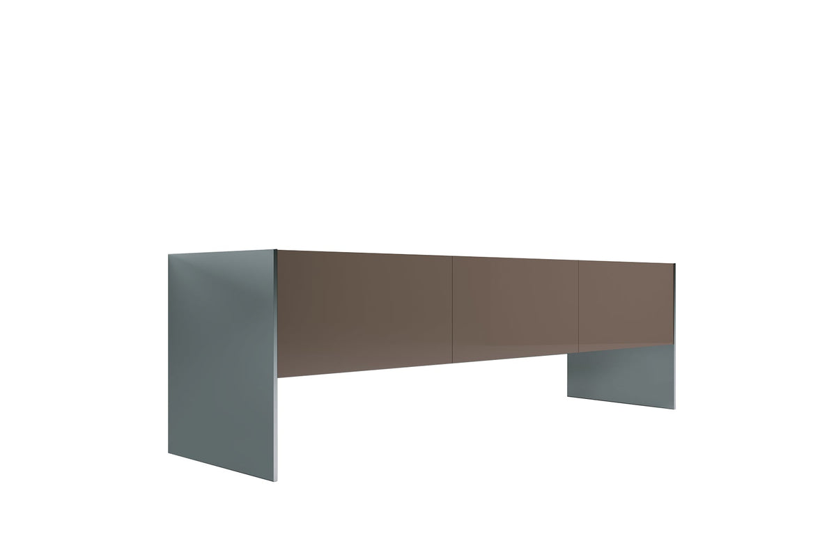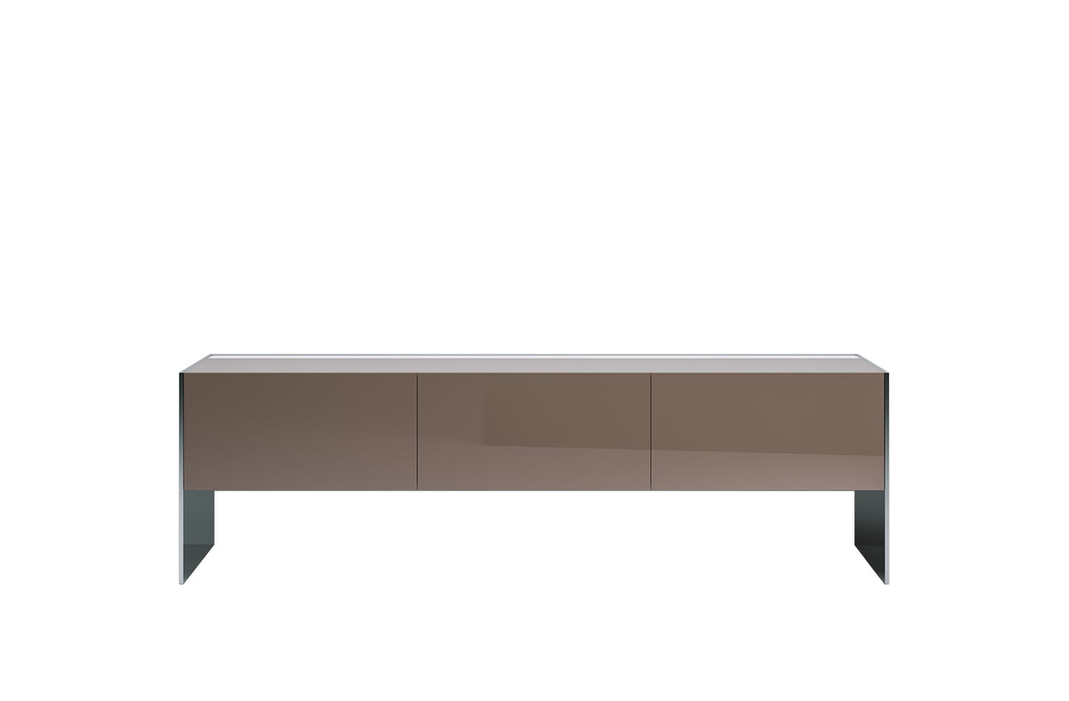 In a unique collaboration, award-winning designer Gabriele Buratti and Acerbis’ own Lodovico Acerbis created this unusually wide sideboard, emphasized by a minimalist structure that rests on two ephemerally thin side panels in mirror-polished steel, and bathed in light diffused by a matte methacrylate strip set into the top, with an illuminated interior and base as well.