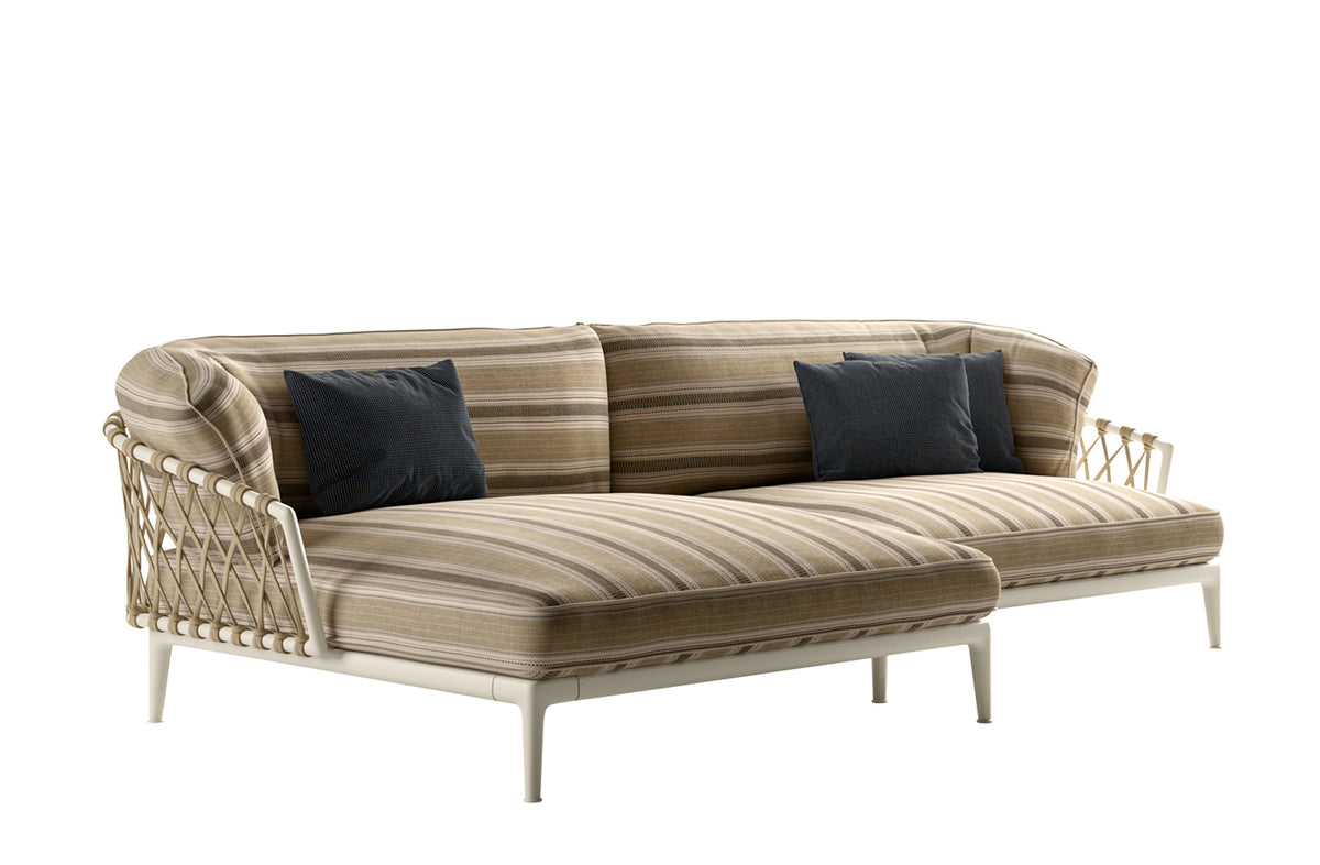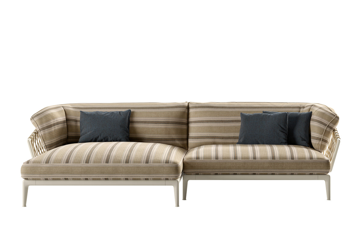 The Erica ’25 series of outdoor sofas stands out for its lightness and refined design that make it ideal for both public and residential settings, delivering ergonomic comfort together with strength for outdoor use. The proposal comprises linear sofas in different sizes and depths, sofas featuring a slightly curved design ideal for creating dynamic and convivial solutions for outdoor relaxation, a dormeuse also characterized by a curved design, a day bed with particularly generous proportions equipped with a high back and integrated headrest.