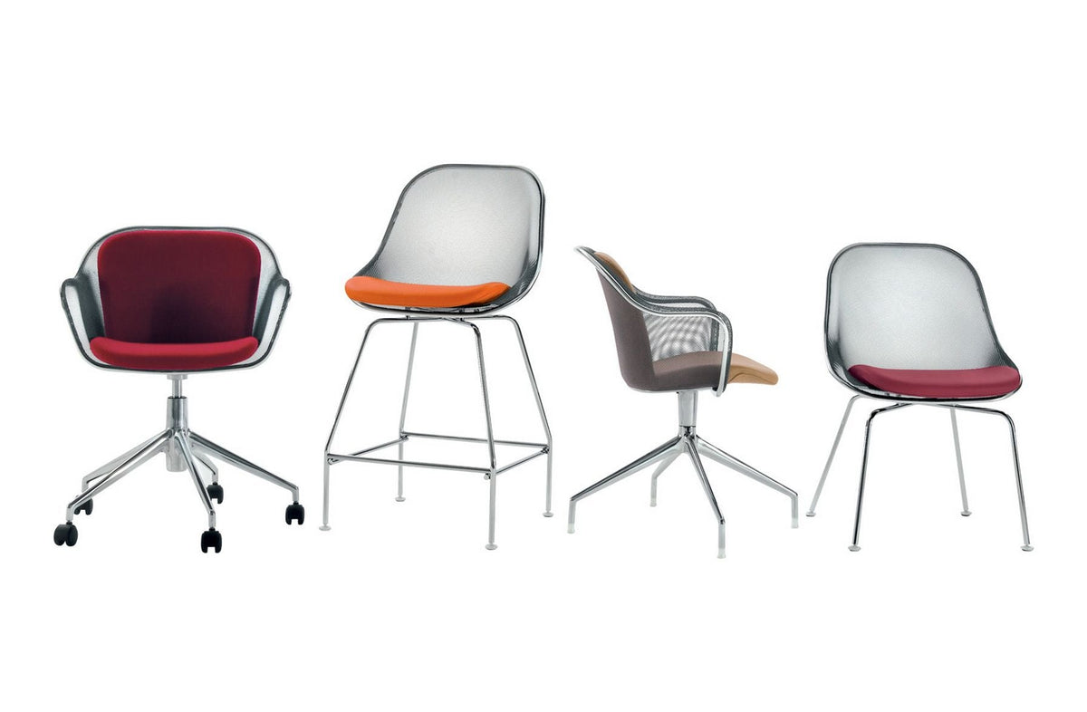 B&B Italia icon revised for contract use. A moulded wire mesh shell, with or without armrests provides outstanding levels of comfort and is available with a variety of base options.