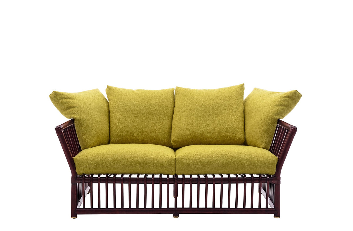 B&B Italia revisits the past with the new Softcage outdoor collection, which is inspired by a 1975 project by Mario Bellini, whose avant-garde vision opened new horizons in the use of rattan as a valuable material for furnishings, combining bold shapes and a timeless elegance. Today this iconic concept is reinterpreted through B&B Italia's lens of innovation to give life to a collection that preserves the magic of hand-crafted rattan and blends it with contemporary aesthetics. This new interpretation offers an unparalleled experience of comfort and style for outdoor spaces thanks to a highly sophisticated cage structure composed of 45 mm sections and 18 mm rods. The load-bearing structure boasts gentler and more ergonomic shapes thanks to the base under the seat and the backrest, both inclined and suspended. The new collection consists of a sofa in two sizes and an armchair, all with a rattan structure offered in different colours. The range of colours and fabrics allows you to personalize outdoor spaces with a touch of elegance and functionality.