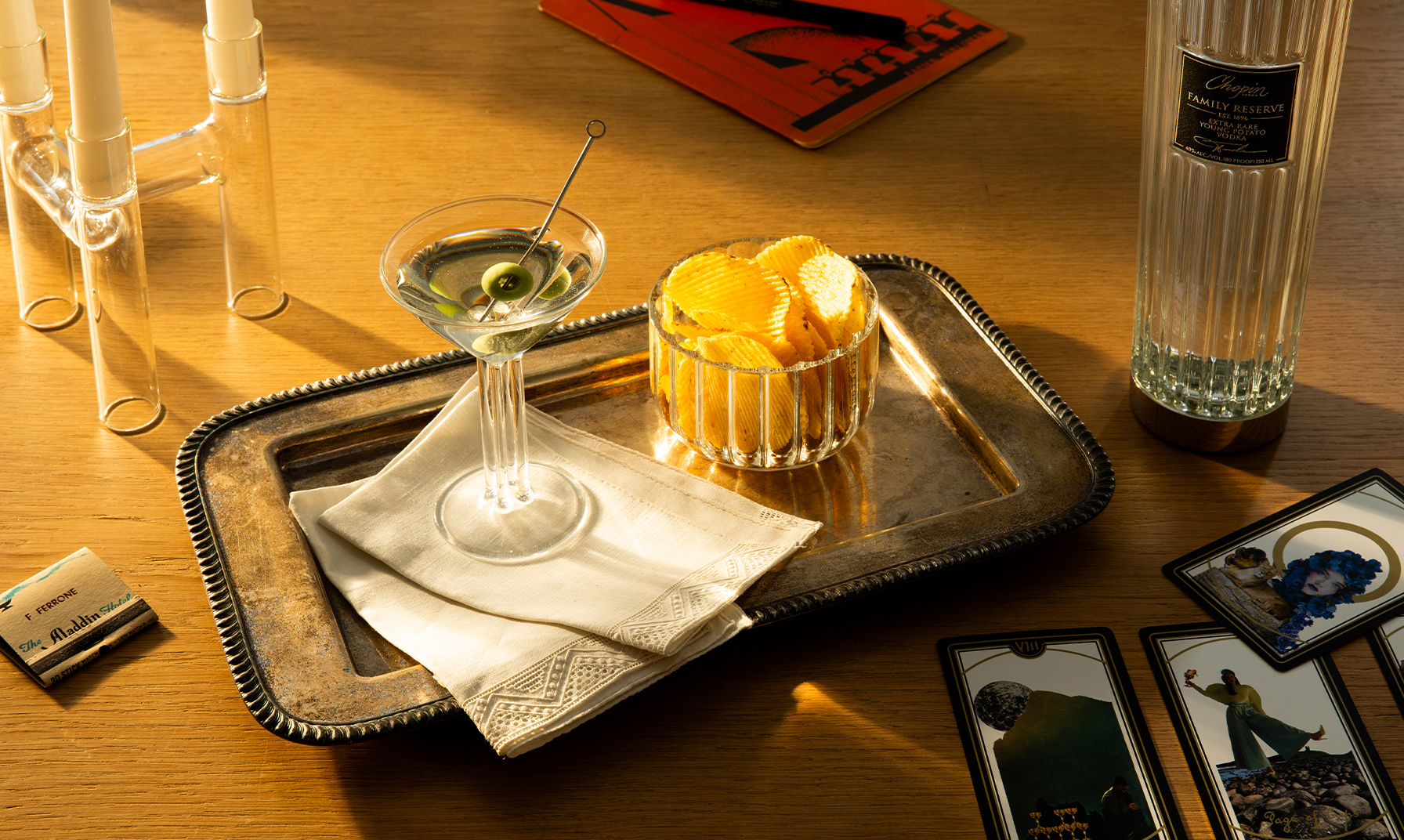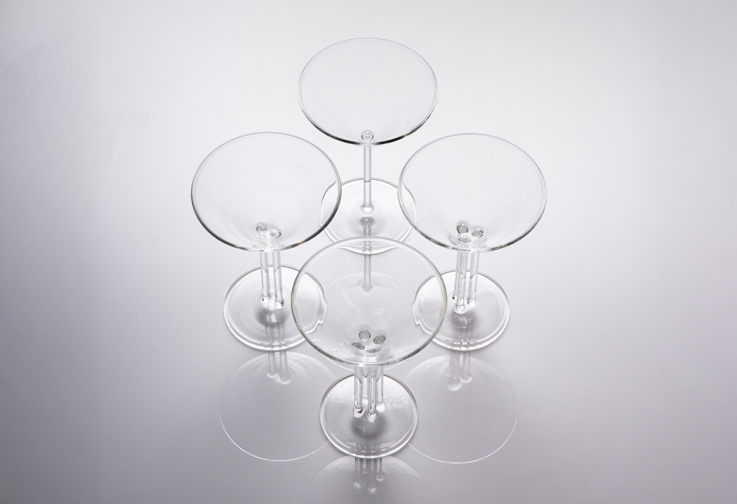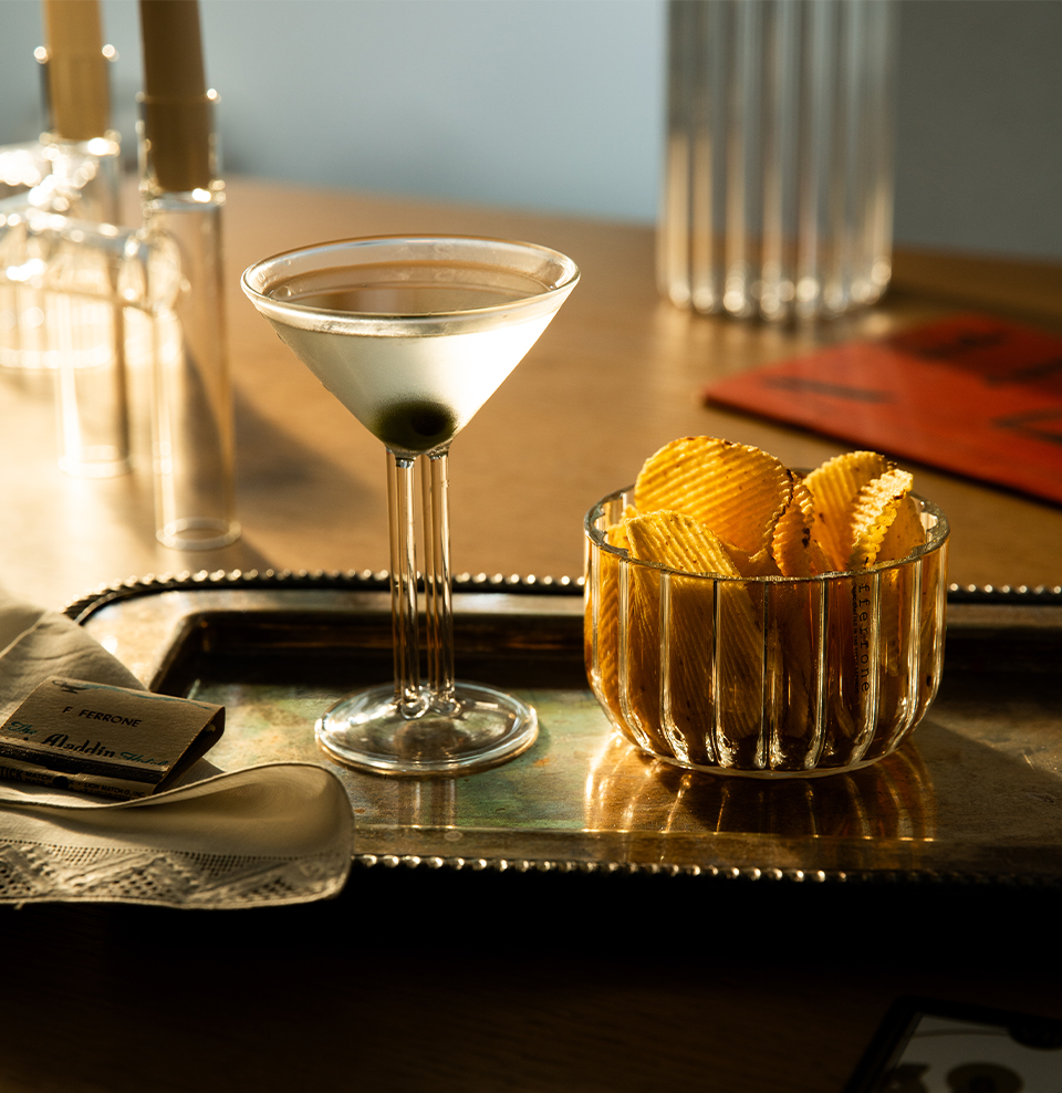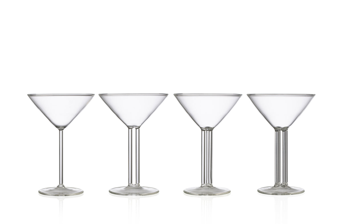 Inspired by the iconic Martini Glass, first introduced at the 1925 International Exhibition of Modern Decorative and Industrial Arts in Paris, each glass is defined by a unique number of architectural-like columns: one, two, three, or four, offering a unique visual and physical experience. The result is a set of four handcrafted 3oz glasses perfectly designed for sipping mini martinis. The collaboration embodies Chopin and fferrone’s shared dedication to mastery of their craft.