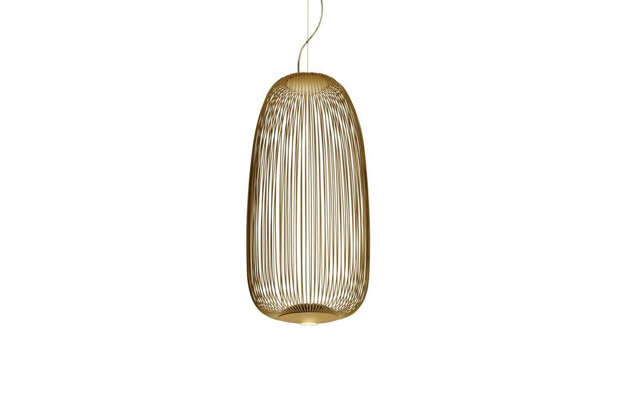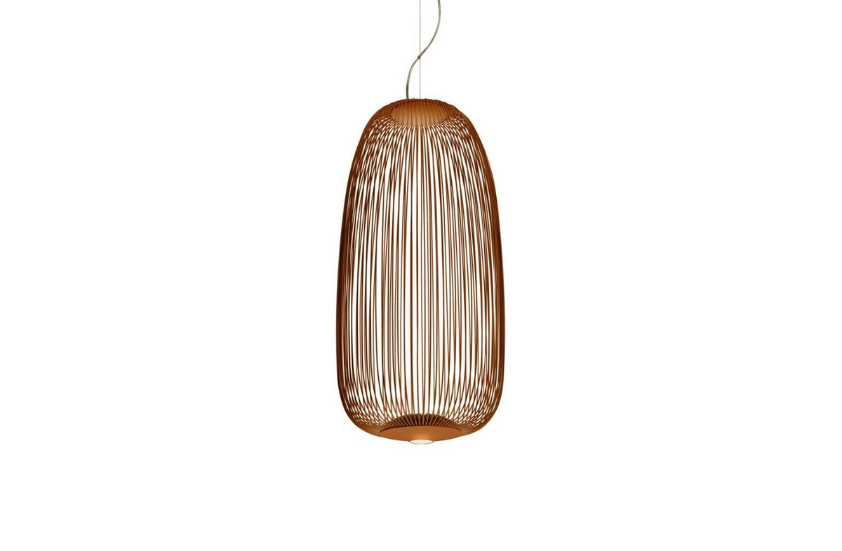 Spokes expresses a feeling of light weight and motion. As if crossing a magical and geometrical mesh, the light filters out from the inside, projecting a kaleidoscope of blocks and voids. The Spokes 1 suspension lamp stands out for its elongated and dynamic shape.