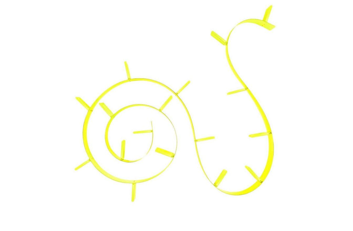 Bookworm, the flexible bookcase, is the result of the encounter between the creativity of an artist such as Ron Arad, combined with Kartell's technology, giving life to a revolutionary project produced on an industrial scale. A sinuous bookcase that takes on the desired shape without compromising strength and functionality. Available in three different lengths, Bookworm is marked by a series of bookend supports. Bookworm combines flexibility and high strength allowing a load of about 10 kg per support.