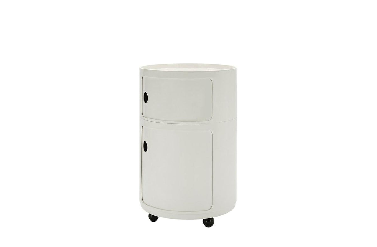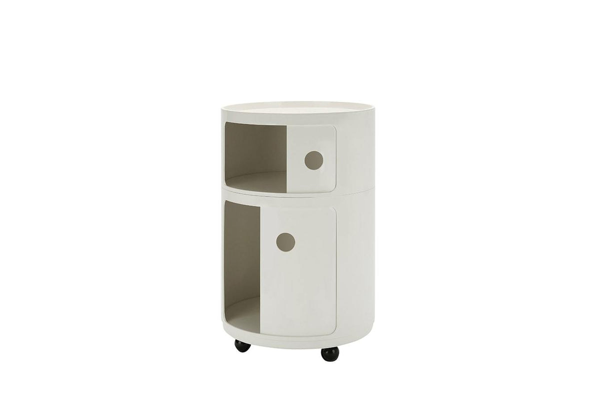 The modular elements were designed to meet different needs and to fit perfectly into every room in the home. The design solution behind the Componibili modular system is the basic and solid vertical overlapping of the individual pieces which are simply interlocked to create practical storage units. Available in both round (diameter 32 cm) and square versions (38x38cm), the elements in the Componibili system can be placed on castors. Flexible, functional, practical, Componibili, created in 1967, are a timeless furnishing classic. Available in glossy white or silver finishes.