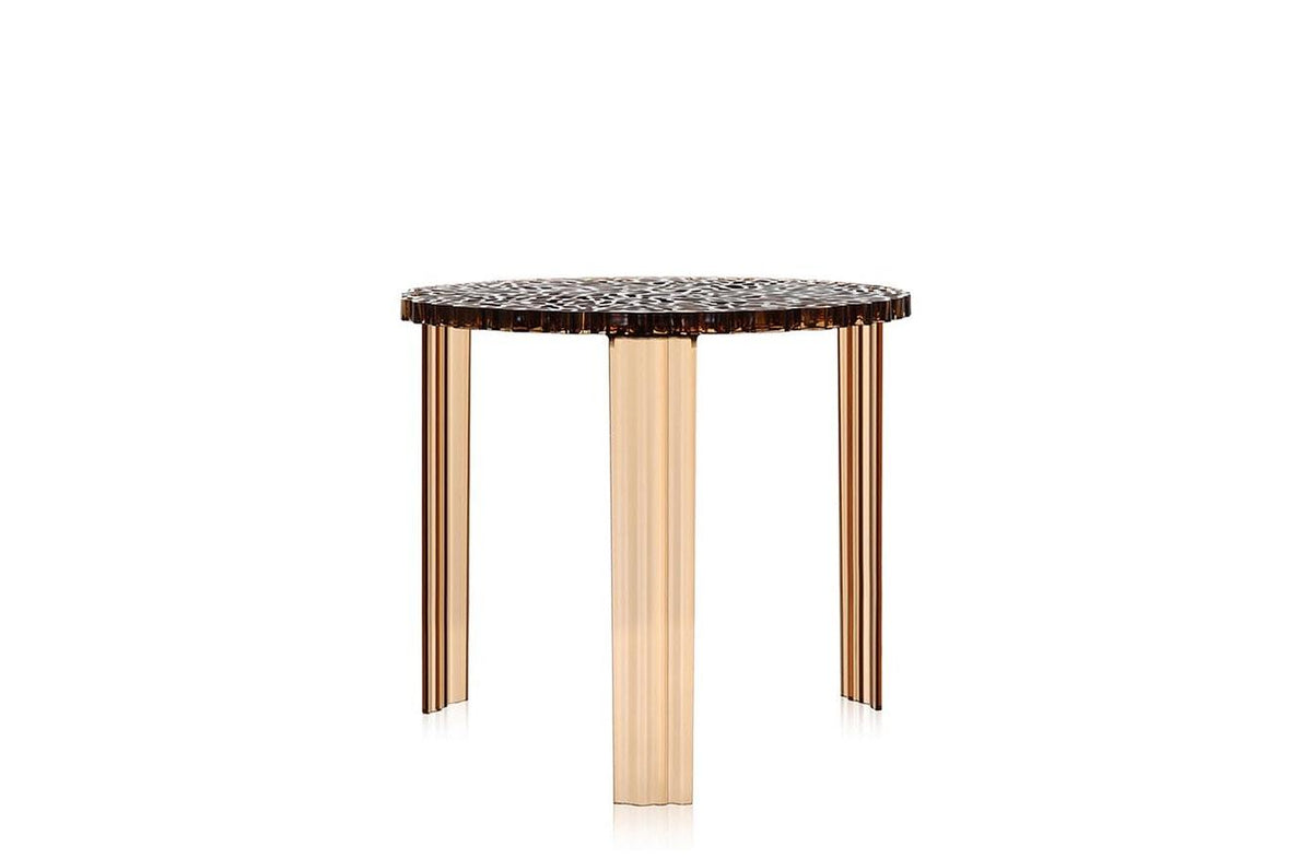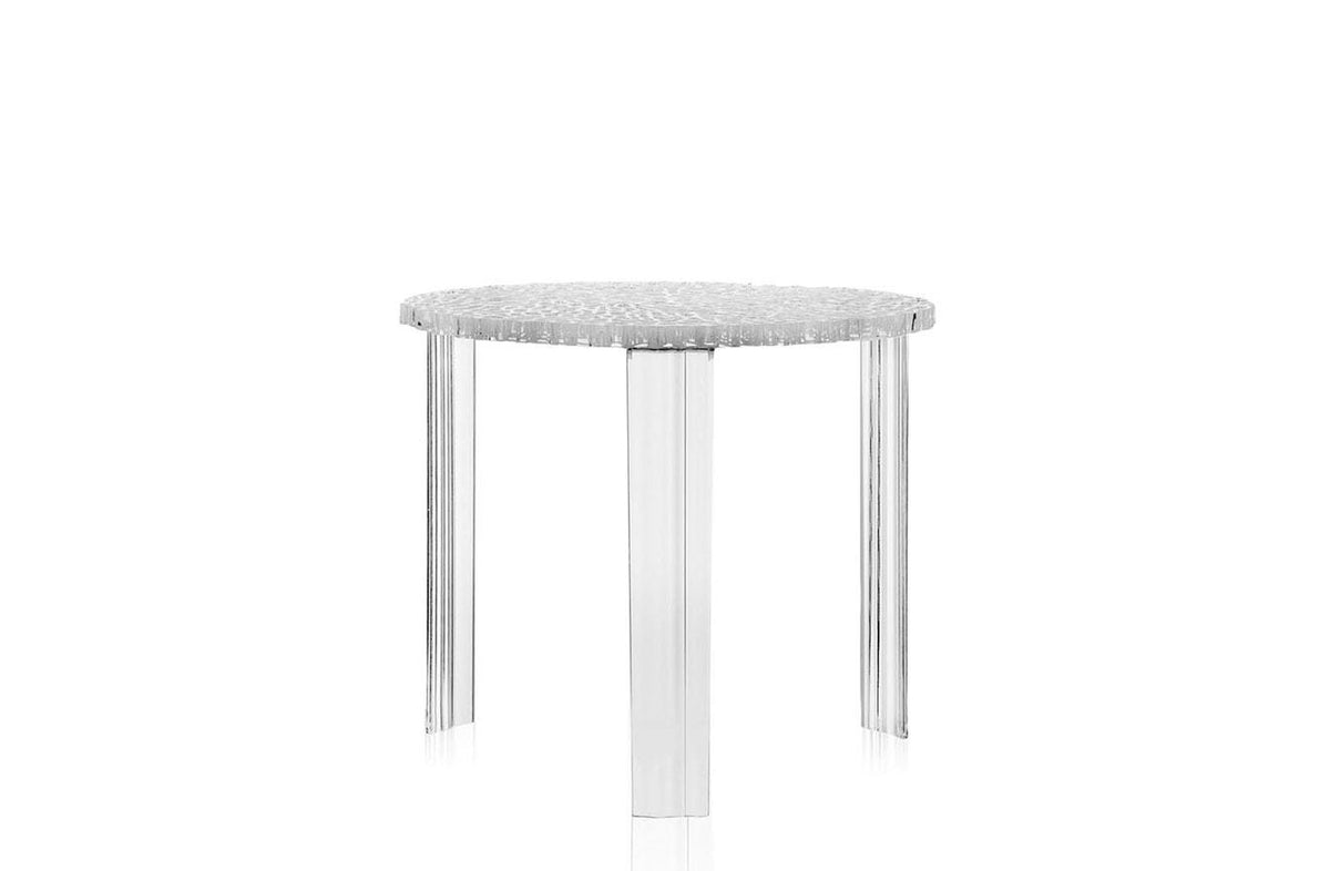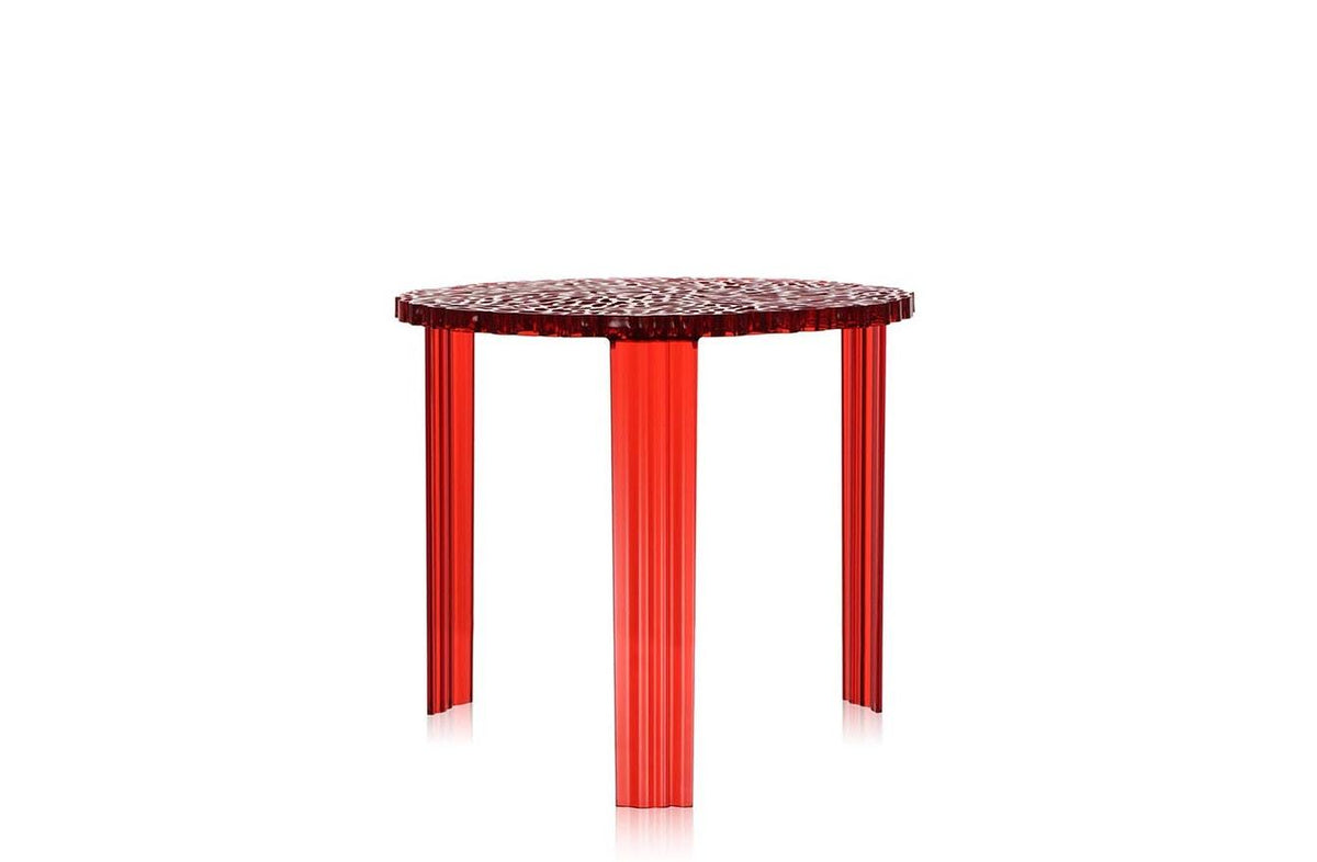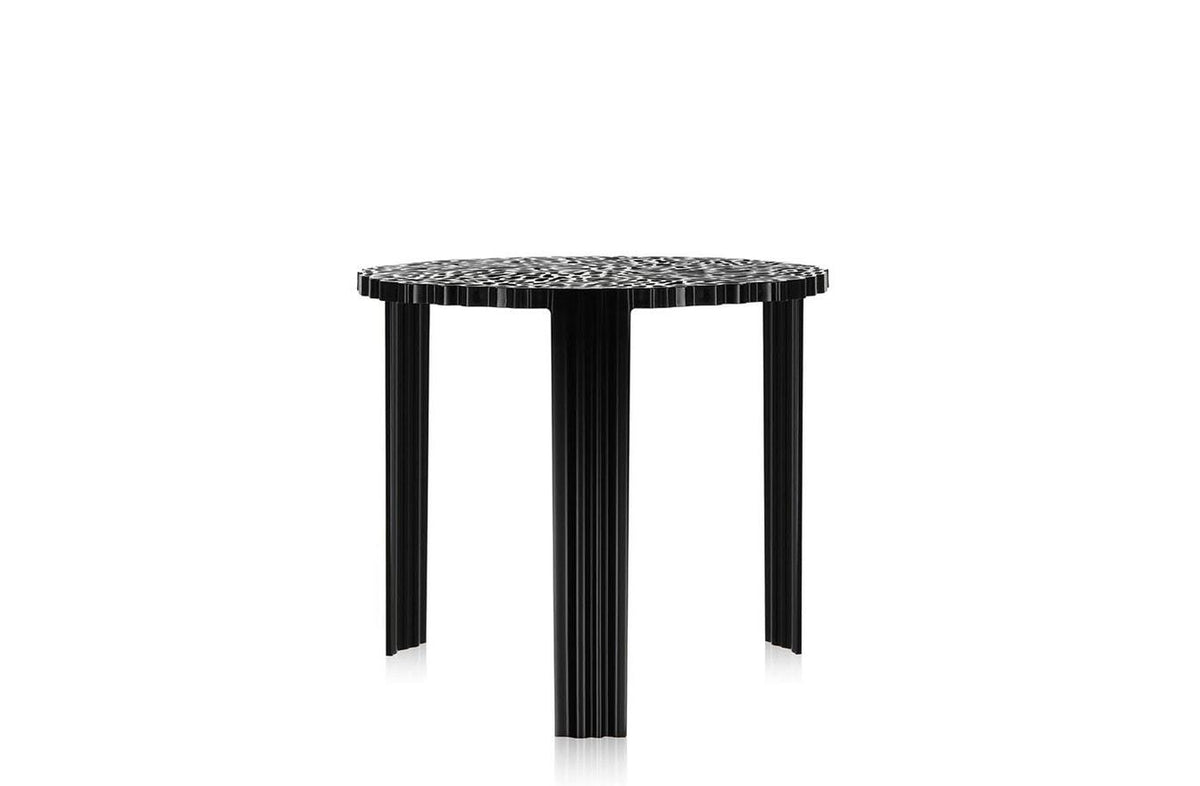 A line of tables in three heights. The surface of the T-table top alternates fullness and space to create an elegant and precious effect which is reminiscent of embroidery.