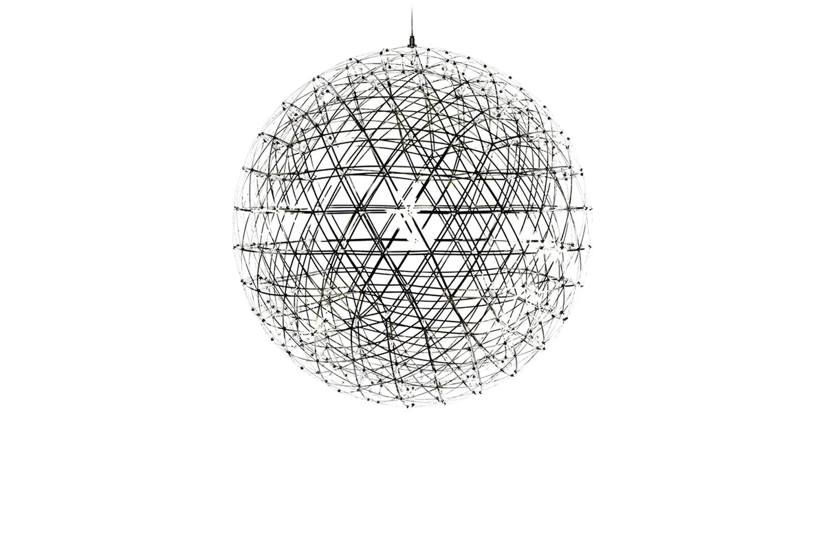 The Raimond light is a perfect sphere of mathematical ingredients punctuated by tiny LED lights. It is specially detailed to spread warm white light in every direction and looking at the light feels like staring into the soft glow of a starry night. Inspired by the geodesic dome, designed by Buckminster Fuller, the Raimond lights are the result of almost forty years of research and dedication of mechanical engineer and self-taught designer Raimond Puts (1937 – 2012).