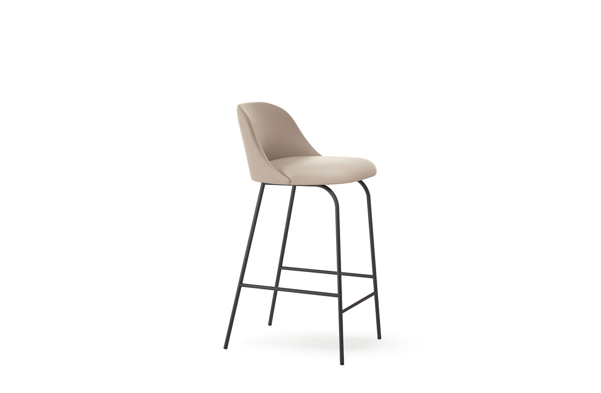Calibrated steel structure with brass finish or powder coated in thermoreinforced polyester in white, black, sand or altea blue, and footrest in stainless steel. Moulded plywood seat and backrest.